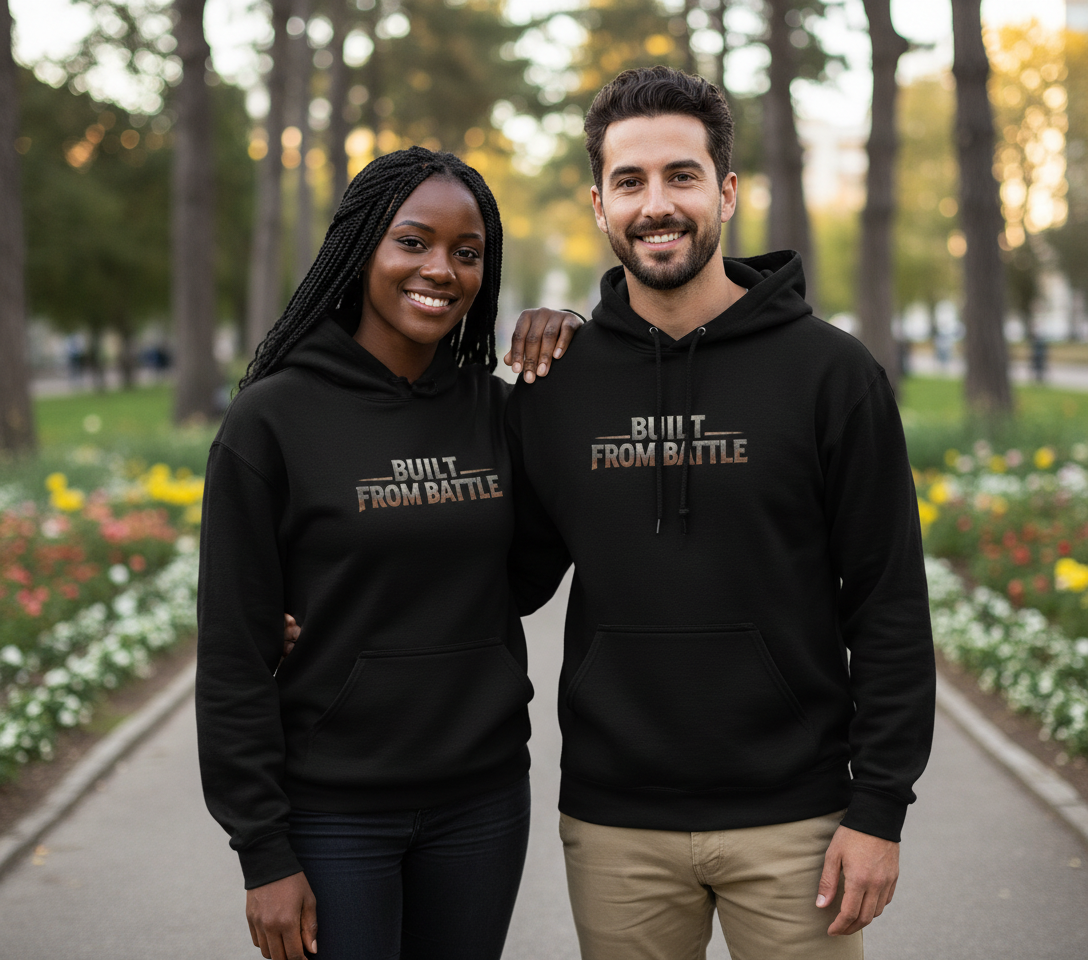 The Built From Battle Hoodie is designed for warmth, comfort, and purpose-driven style. Made with a soft, durable fabric and a relaxed yet structured fit, this hoodie is perfect for everyday wear, cool mornings, training sessions, or unwinding after long days.